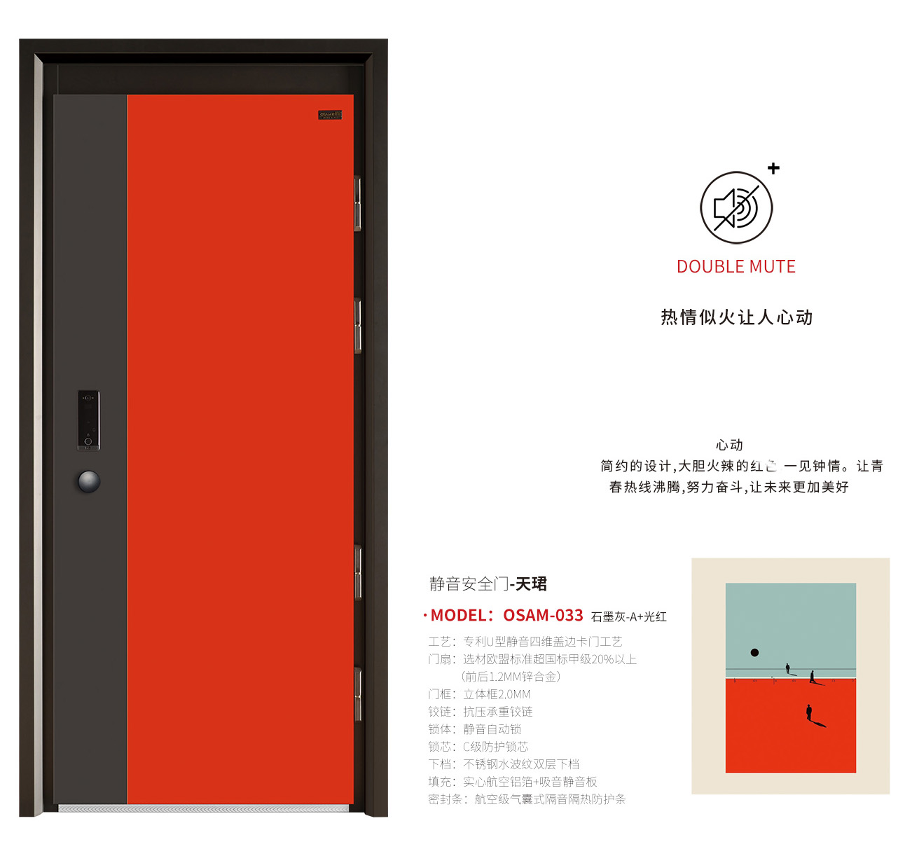 引領(lǐng)技術(shù)-歐奢曼全新打造靜音和安全雙系統(tǒng)安全門,為居者打造全新的生活方式。