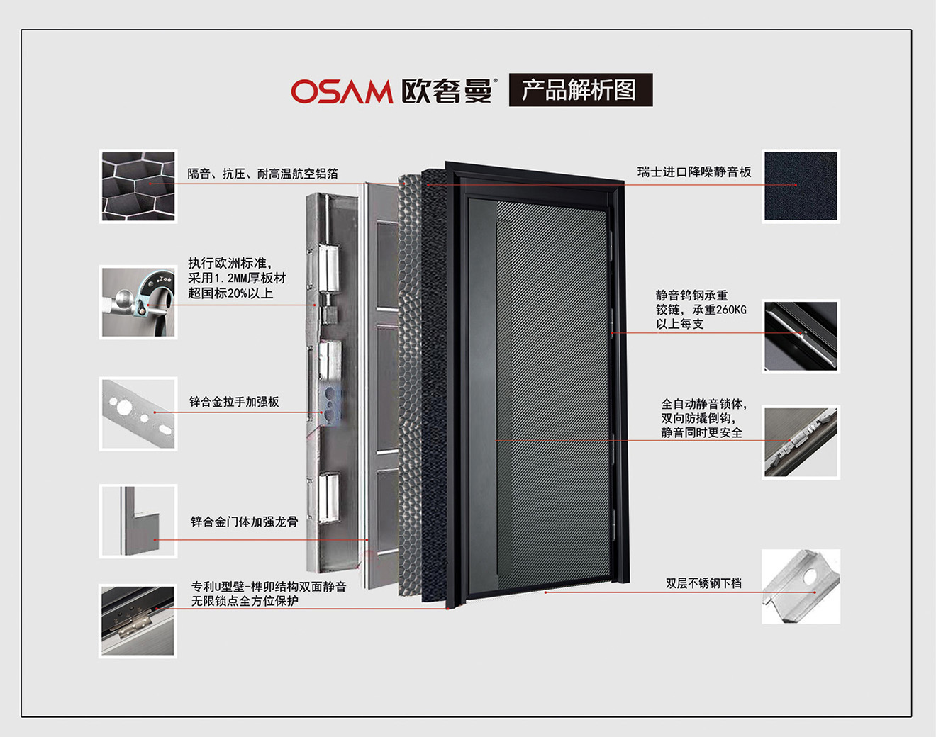 引領(lǐng)技術(shù)-歐奢曼全新打造靜音和安全雙系統(tǒng)安全門(mén),為居者打造全新的生活方式。